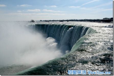 尼亚加拉瀑布是我至今见过的瀑布中最让我印象深刻的。看着那么多的水力量十足地流过边缘,迅速地降落到底部,我觉得很震惊。瀑布和潺潺细流的小溪有些不同,但是都各有各的美。