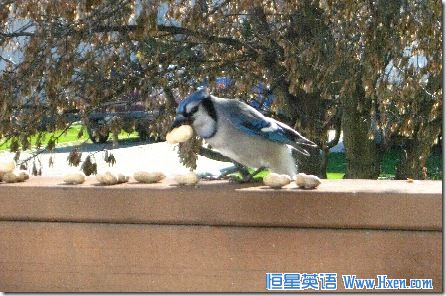 我从来没有把观鸟发展成一门兴趣爱好,但是去年夏天我对每天来我们家的小蓝松鸦有着一种特殊的喜爱。每天早上我和儿子会拿花生给它吃,然后我们就坐在那儿,看着这只可爱的小家伙抓起其中的一粒,飞到附近的树上品尝起来。观察它们的行为真的很有趣。