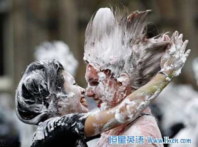 全是泡沫!苏格兰圣安德鲁斯大学的学生们欢度年度“葡萄干星期一”。这些嬉戏着的大一新生们身上似乎再没有地方可以抹上泡沫了。这是当地苏格兰圣安德鲁斯大学的一项古怪传统,成千上万的大一新生必须经历这场泡沫大战。泡沫大战只是盛会“葡萄干星期一”的一部分,据说“葡萄干星期一”的历史可以追溯到这所大学成立之初的1413年。这些新生们在大学的广场上积极地为这张持续30分钟的大战做着准备。这些学生要从头到脚彻底装备,而这些泡沫质感很厚,是专门用来固定发型的。活动的目的是让这些新生们更好地融入大学校园的生活。