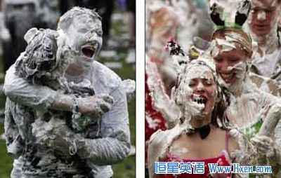 泡沫的世界:右图的两个女孩正在泡沫正嬉戏,左图中两个相拥的学生已经通身都是白色泡沫。 3/4 首页 上一页 1 2 3 4 下一页 尾页