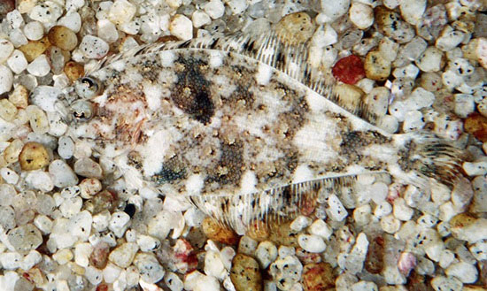 Sea-through? Speckled sanddab fish that makes itself look like pebbled ocean floor and is barely recognizable.