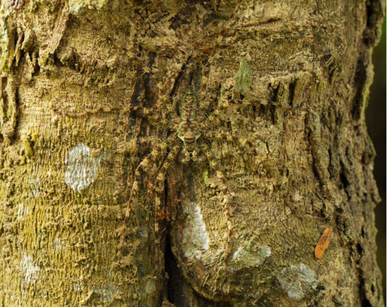 爬过去…这只泰国蜘蛛完美地镶嵌在了树皮上。