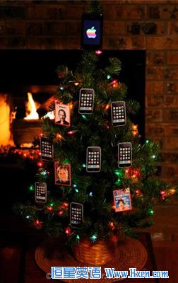 今年,一些Iphone的超级粉丝将圣诞树装饰上了Iphone挂件和乔布斯的画像,以缅怀这位先人。