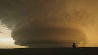 龙卷风具有很大的破坏性,提醒人们大自然拥有怎样令人敬畏的力量。这幅照片在美国德克萨斯州拍摄,展现了柴尔德里斯上空出现的罕见云型,彷佛一艘空中的航空母舰。这种云的出现预示着一场超大胞雷雨。超大胞雷雨经常引发龙卷风,风速可超过每小时200英里(约合每小时322公里)。龙卷风通常在宽阔的陆地和海洋上空形成。