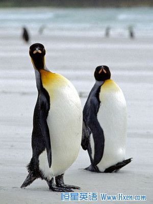国王企鹅的鳍非常大,这使它们能在水中潜得更深。在陆地上,它们只能步履蹒跚,或肚子着地,用巨大的鳍滑行。