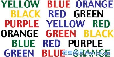 这是因为,我们的右脑正在努力说出颜色,但左脑却在不自觉地念单词。