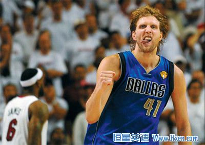 Dirk Nowitzki of the Dallas Mavericks celebrates a point against the Miami Heat in Game 6 of the NBA Finals on June12. Dallas claimed its first NBA championship in franchise history. Don Emmert / Agence France-Presse