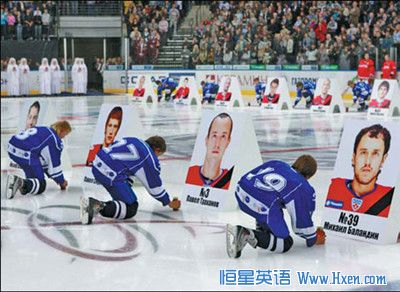 Belarus hockey players place candles infront of portraits of Lokomotiv Yaroslavl team members in Minsk on Sept 8,during a ceremony to commemorate the members of one of Russia's top ice hockeyteams, who were among 43 people killed in a plane crash on Sept 7. Maxim Guchek/ Agence France-Presse