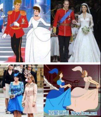 从威廉王子向凯特米德尔顿求婚的那天起,他们的关系就被看作是现实版的童话故事。但是卡特从平民到王室成员的转变过程并不是她和灰姑娘唯一的共同之处。上面两张照片前几天在网上被疯狂转发,似乎这个奢华的、故事书般的婚礼是来自迪斯尼经典电影的桥段——至少在一些服装的选择上。