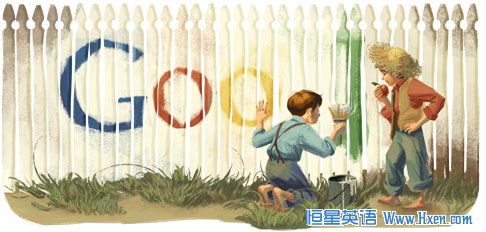 马克·吐温可能是文学史上最言辞犀利的作家小说家之一了。谷歌涂鸦呈现的诞辰献礼是他笔下的小男孩汤姆·索亚,连哄带骗过来一个小伙伴,帮他粉刷篱笆墙。