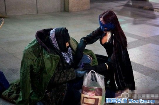 这位女侠着黑色低胸紧身衣,戴蓝色面具,让人瞩目的不仅是她的慷慨,更是她的装扮。撇开笑话不说,她确实做了件大好事——为乞丐、无家可归的人分发食物、棉衣、礼物。有人不禁要问,为什么她自己不在12月的寒冷冬夜穿得暖和些呢?这仍然是个谜。这个神秘女人的出现在北京居民中引起轰动,并迅速成为互联网和当地媒体的新闻人物。圣诞平安夜之后,她在西单地铁和王府井书店前等公共场所行善的照片一直备受瞩目。这位超级女侠通过中文微博与外界沟通。目前,她拥有7000多名在线粉丝。