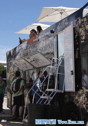 不过,因为车行走的时候厨房是不允许运作的,大多数食物是在外面准备好,或是停在指定的停车场时在车上的厨房做好的。