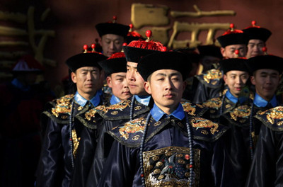 2012年1月22日,作为清代皇帝祭祀表演的一个环节,北京地坛公园的演员们正身着戏服表演。