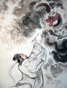 adding eyeballs to the picture of a dragon to bring it to life, which is to put the finishing touches to something