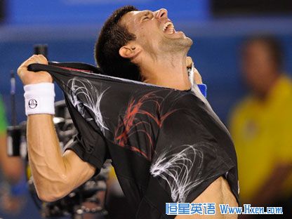 24岁的德约科维奇脱下球衣以示庆祝。他走向自己的支持阵营,面对着自己的粉丝,兴高采烈又无限放松的小德不断用拳头击打着球场的侧壁。