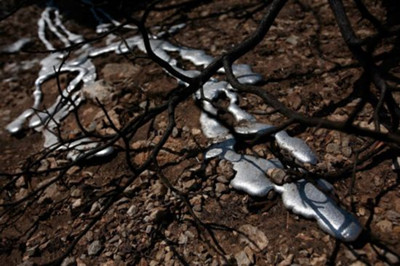 美国德克萨斯州的大火过后,到处可见融化了的金属。