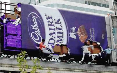 Cadburry is known to be one of the best tasting chocolate bars in the world, but tasty as a billboard ad? Yes, this billboard actually shows life-size mannequins eating and tearing the chocolate bar, little by little. Cadburry也是迄今为止全世界最美味的巧克力品牌之一,它的广告牌是不是也一样有品呢?当然,这块广告牌其实是在向众人展示一群真人模样的时尚模特儿正在一点一点撕开巧克力条的包装,尽情享受巧克力的美味。