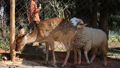 云南昆明一家动物园将于情人节那天为一只羊和一只鹿举办婚礼,这对“新人”将受到很多关注和祝福。