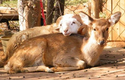The male sheep Changmao (Long Hair) and the female deer Chunzi (Junko).