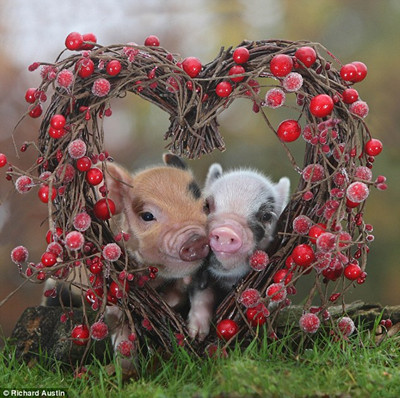 Snout to snout: These piglets get up close and personal as Valentine's Day approaches.