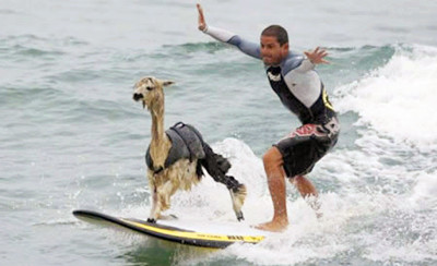 Pisco, probably the world's first surfing alpaca.