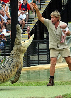 俗话说,虎父无犬子。澳大利亚昆士兰州的一名年仅八岁的男孩,就继承了父亲冒险的职业——喂养美洲鳄。这名八岁的小男孩名叫Robert Irwin,他的父亲名叫Steve Irwin,是澳洲环保人士、电视节目主持人。最广为人知的节目就是与妻子一起主持的“鳄鱼拍档”然而,在2006年,他在大堡礁海域拍摄一部名为《海中最致命生物》的纪录片时,遭到鲼鱼(又称魔鬼鱼)有毒刺钩刺入胸部,在送医前就不治死亡。