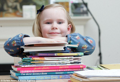 英国四岁女孩Heidi Hankins智商达159,只比爱因斯坦和斯蒂芬·霍金低一分,而普通成年人的智商是100。Heidi的父亲是大学教授,母亲是艺术家,她两岁即可数到40、画人物画、背诗、读7岁孩子读的书。目前,Heidi已经成为世界顶级智商俱乐部门萨俱乐部的最小会员之一。