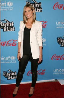 Wear White 白色亦精彩 Wearing a white blazer over an all-black ensemble, like Heidi Klum on the red carpet, works for Summer days too. 超模海蒂·克鲁姆在红毯上的这个造型我们可以借鉴一下:全黑的行头外加一件白色外套,夏天穿很适用哦。