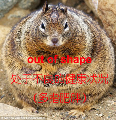 out of shape: 处于不良的健康状况(多指肥胖)