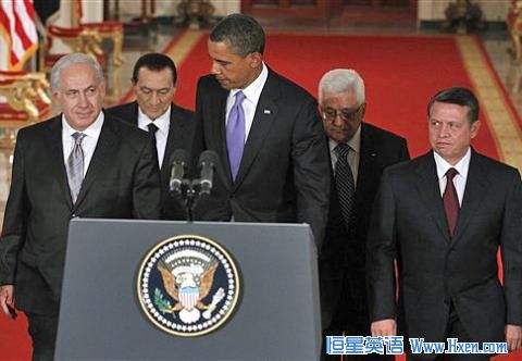 Before a working dinner, all five leaders appeared before the media in the White House East Room to address the central goal - achieving a final settlement within the next year of the Israel-Palestinian conflict.