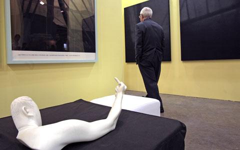 The Art HK fair opened Wednesday with a display of Ai's 2007 "Marble Arm," which depicts an outstretched arm and hand with its middle finger raised.