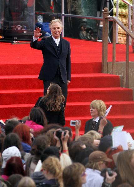 | Actor Alan Rickman poses during the global premiere of Harry Potter and The Deathly Hallows: Part 2, the last film of the series, at Trafalgar Square in London, Britain, July 7, 2011. |