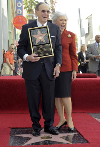| Legendary songwriter Hal David (L) and wife Eunice pose for photographers as the Hollywood Chamber of Commerce honors him with a star on the Hollywood Walk of Fame in Los Angeles, California October 14, 2011. |