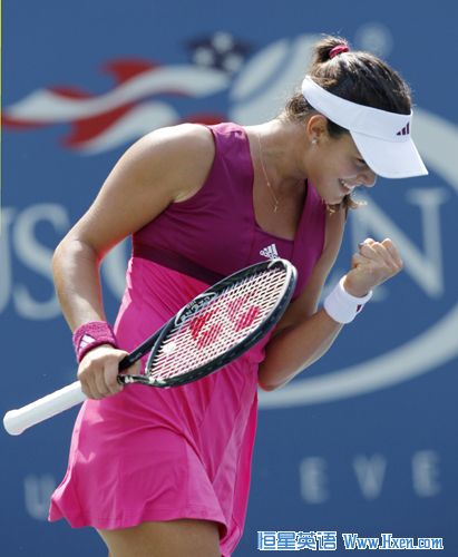 | Ana Ivanovic of Serbia celebrates after defeating Zheng Jie of China during the U.S. Open tennis tournament in New York, September 1, 2010. |