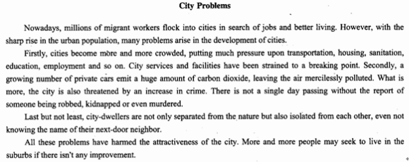 2011年12月英语四级预测作文:城市问题