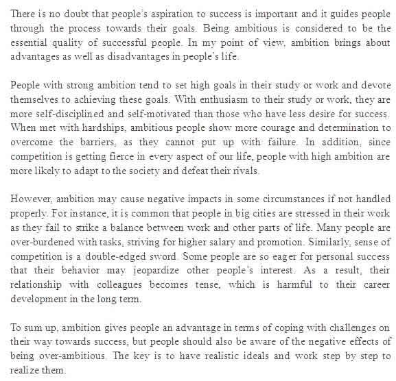 题目:Do you think how important it is for people to want success in life ? Is ambition a positive or negative characteristic?