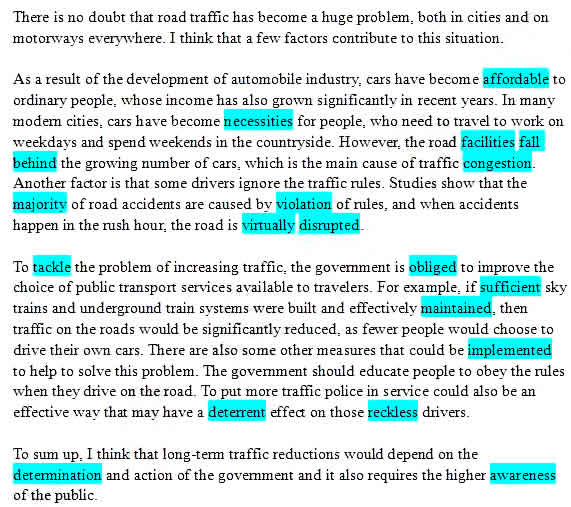 当然这个题目的本意并没有让我们写雨天的交通问题,为了考试能拿高分,还是尽量写一些常规论据,比如汽车工业发展,人们收入增加,买车的多了,而道路设施落后,导致堵车。此外,还提到了司机违章和惩罚的问题,为什么把这个也写进来呢?因为它是老徐雅思6、7、8月份预测中的一个题目。现成的素材刚好派上用场。