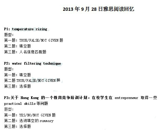 2013年9月28日雅思阅读真题回忆(新东方版)