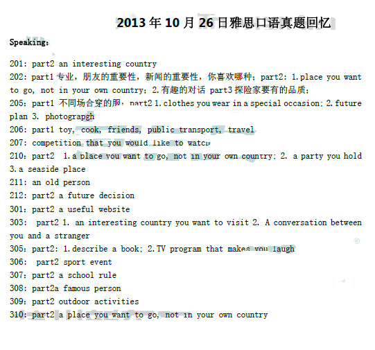 2013年10月26日雅思口语真题回忆(新东方版)