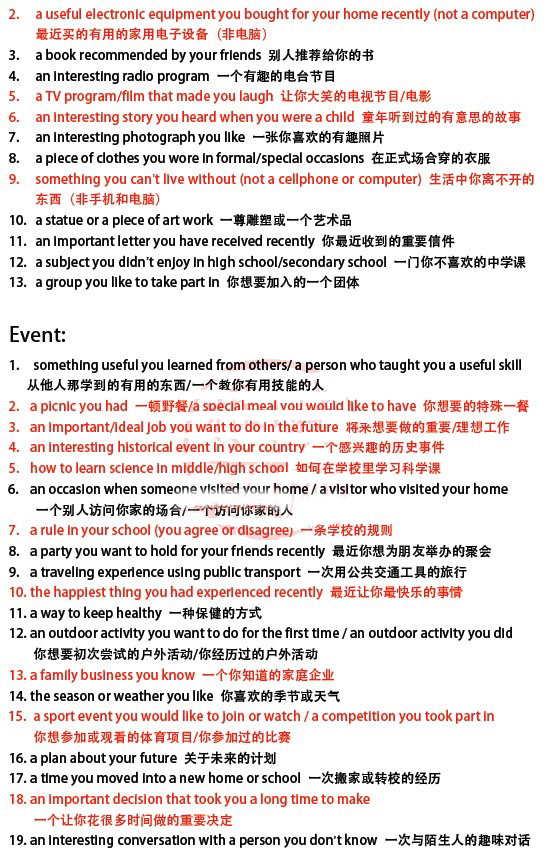 2013年10月10/12日雅思口语预测(李晓刚版)