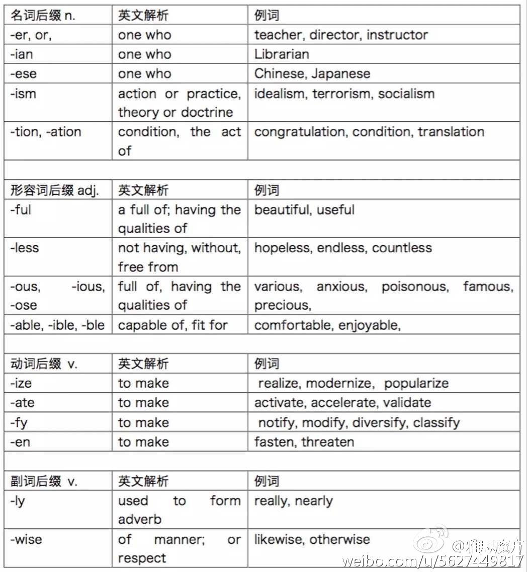 后缀我们可以判别单词的词性,利用最基本的知识:副词修饰动词和形容词,形容词修饰名词,我们在做填空题的时候不难利用横线前面单词的词性来推测出横线里面要填的单词的词性,从而在原文中缩小范围。比如...asa result of geographical_______ 我们知道后缀为-al的形容词后缀,因此横线中要填的一定为名词,那么名词的后缀又有-tion,-ity,-ness...答案从形式上先确定了,找起来就特别容易。