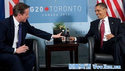 这是卡梅伦于上月就任英国首相后与奥巴马的首次碰面。此前由于卡梅伦的专机出现技术故障,他搭乘奥巴马的直升飞机(译者注:从G8峰会现场)一同前往多伦多参加20国集团领导人峰会。