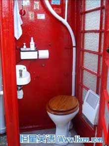 来自萨默塞特郡陶顿的退休推销员约翰•朗在电话亭中安装了一个陶瓷马桶、一个洗手盆、一个高位水箱、磨砂玻璃板、和一个热水器,此外还在冲水绳的末端系了一个红色网球。