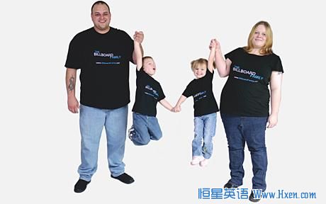 美国有一家四口近日集体上阵,以一天两美元的价格出售自己,为公司做广告。
