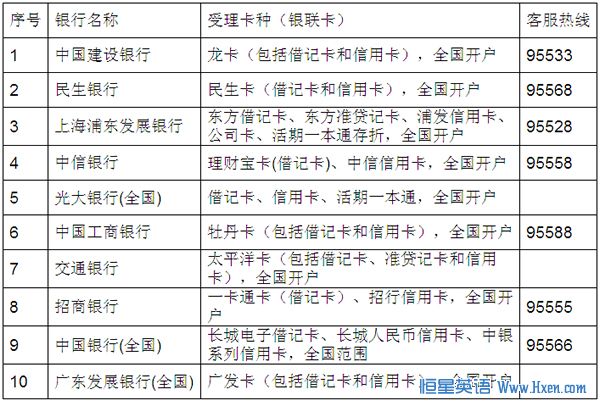 附银行卡列表如下: