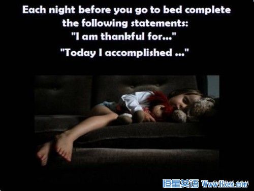 每晚睡觉前要完成以下陈述“我很感激……”“今天我完成了……”