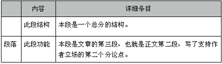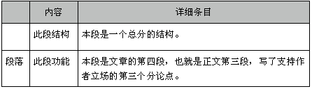 本文的观点新颖,摒弃了传统的对称式辩论写法,层层递进的解释了自己的论据,阐述了自己的论点。除了文章首段的主旨段,之后的每一段都以一个让步句作为首句,然后再从正反两面论述自己的分论点。逻辑结构严密谨慎。由此可知,大家在写作文的时候不要怕自己的论点标新立异与众不同,只要能做到言之有理,论点充分,逻辑严谨,最终能够自圆其说,一样会得到考官的青睐。