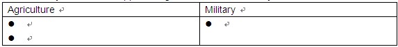 Directions: Complete the table below by matching THERE of the five answer choices with the ways advances supported agriculture and the military.