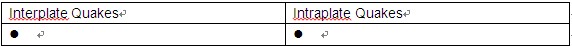 Directions: Complete the table below by matching TWO of the five answers choices with the kinds of earthquakes.