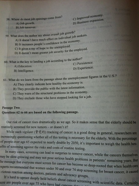 2012年12月英语四级仔细阅读真题图片